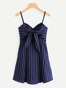 Robe caraco rayée avec nœud devant
