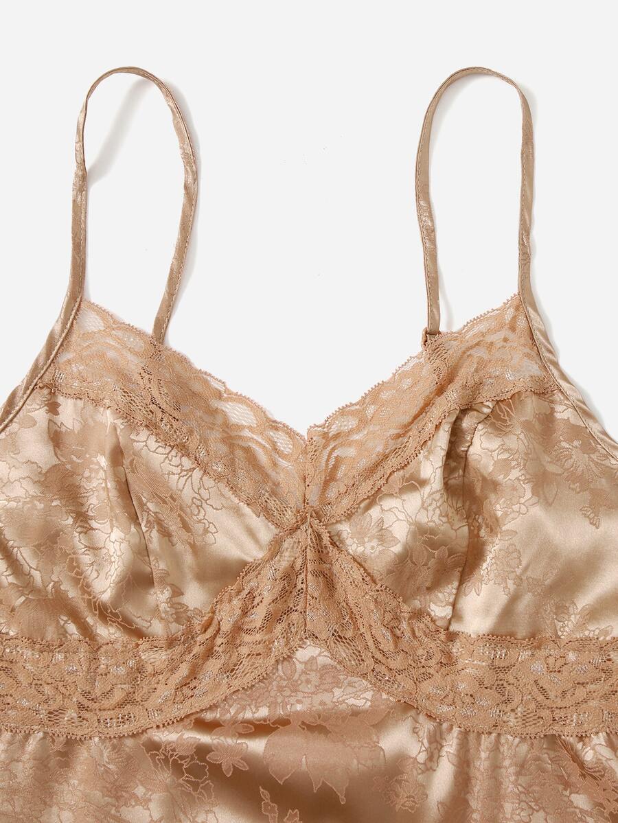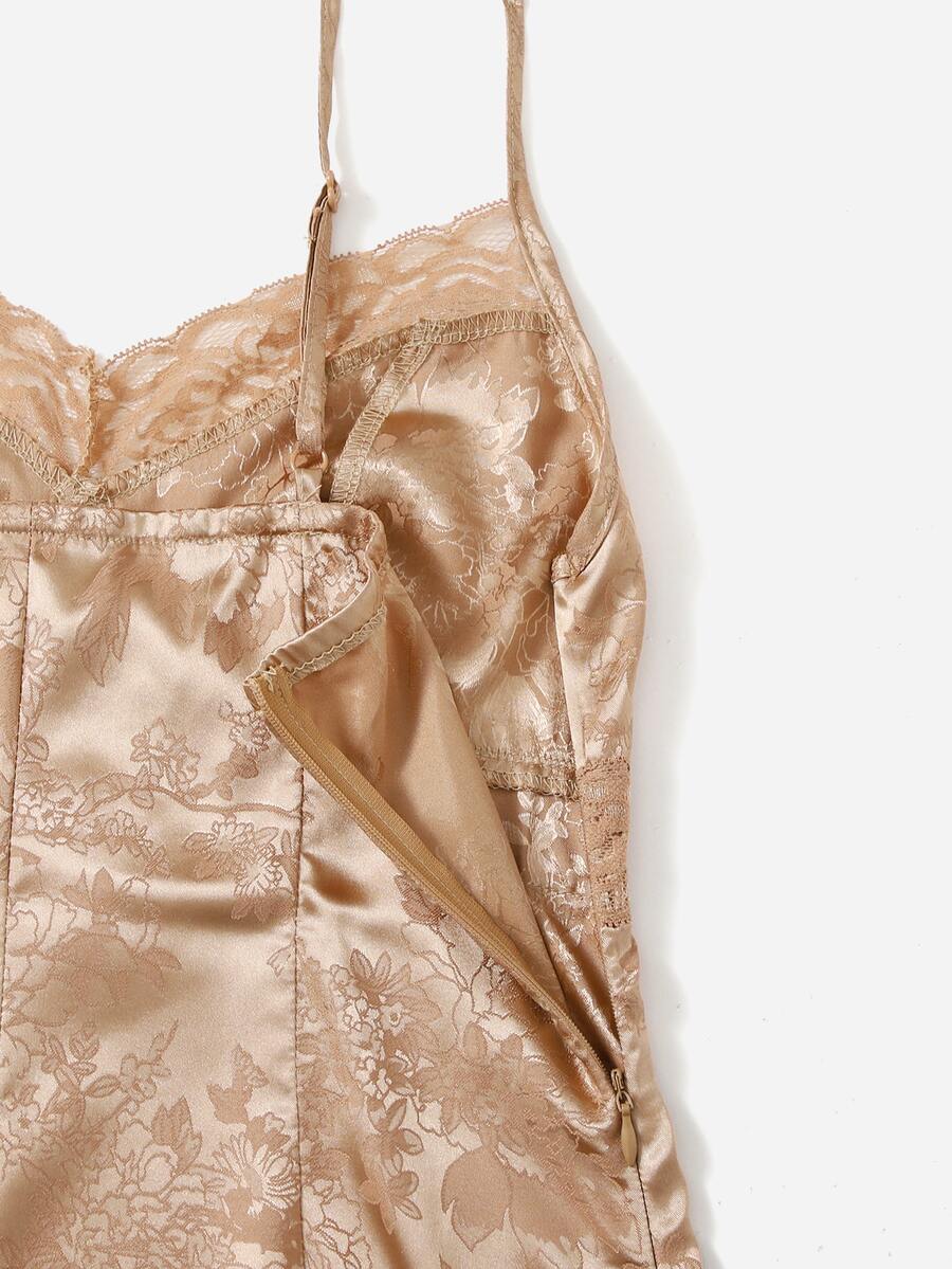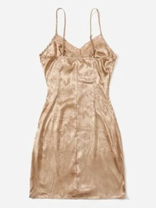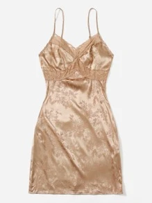 Robe à fines brides en satin jacquard à ourlet en dentelle