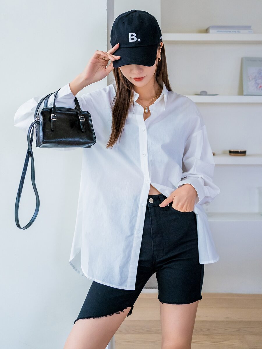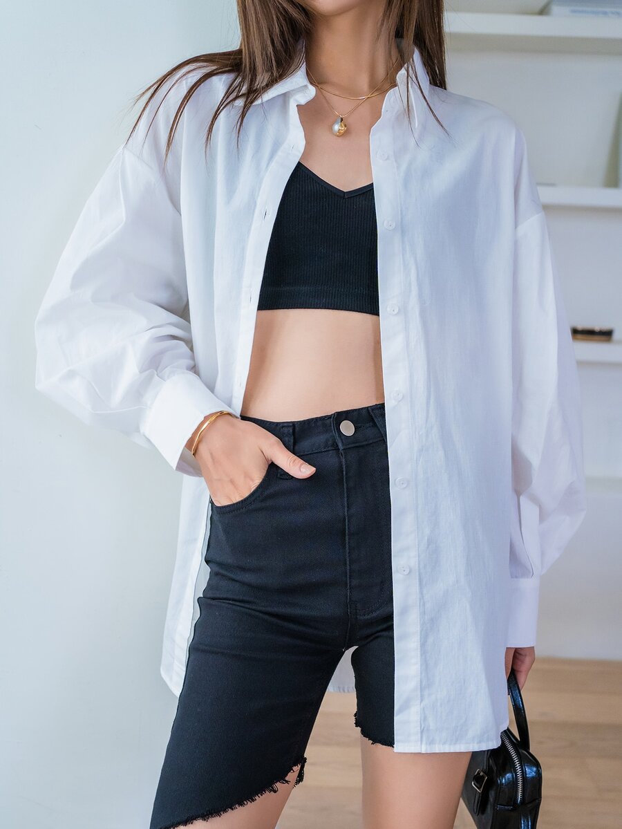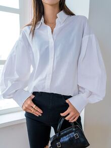 Chemisier à manches bouffantes à bouton long