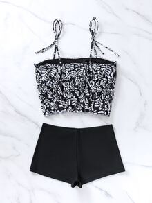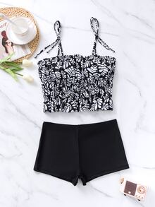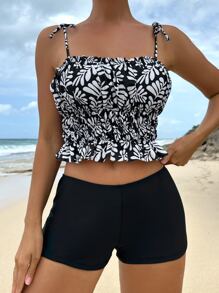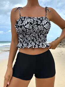 Tankini à volants imprimé feuilles pour l'été à la plage