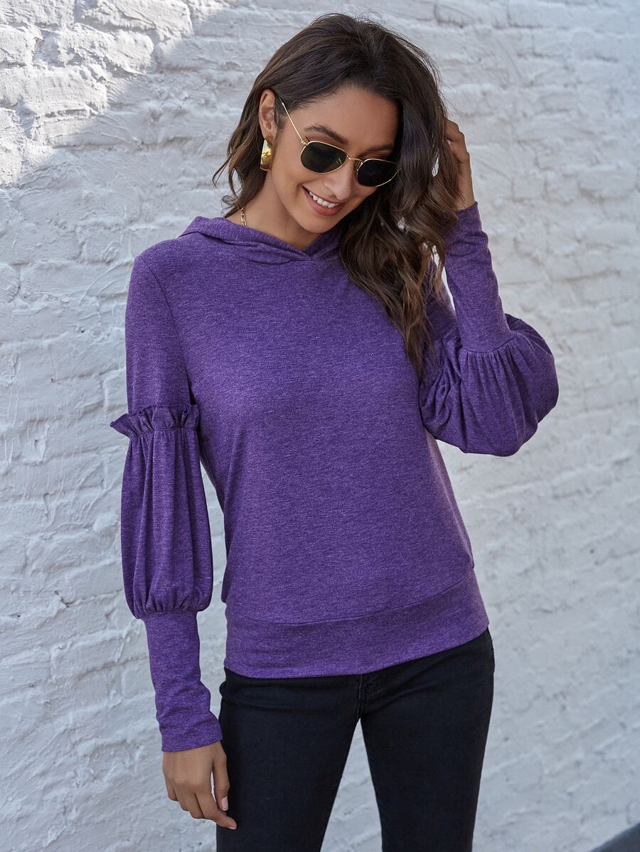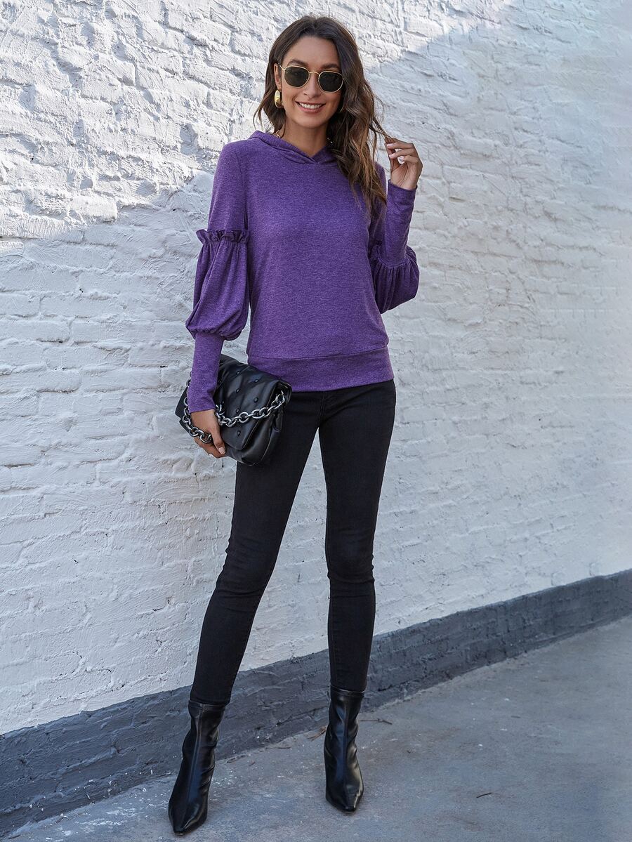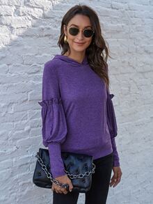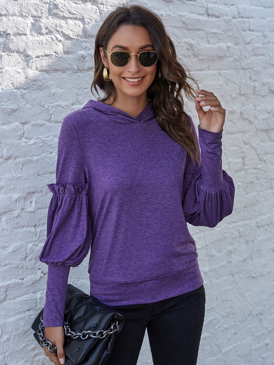 Pull à capuche à manches gigot avec plis