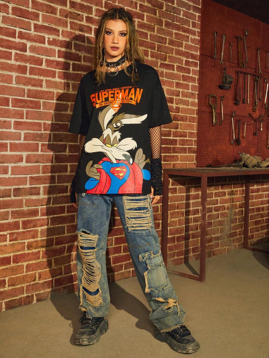 WB 100th | ROMWE T-shirt Lettre Dessin Animé