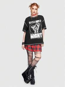 VERTIGO222 T-shirt Lettre Chat Épaule tombante À Surpiqûres