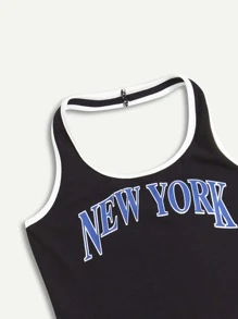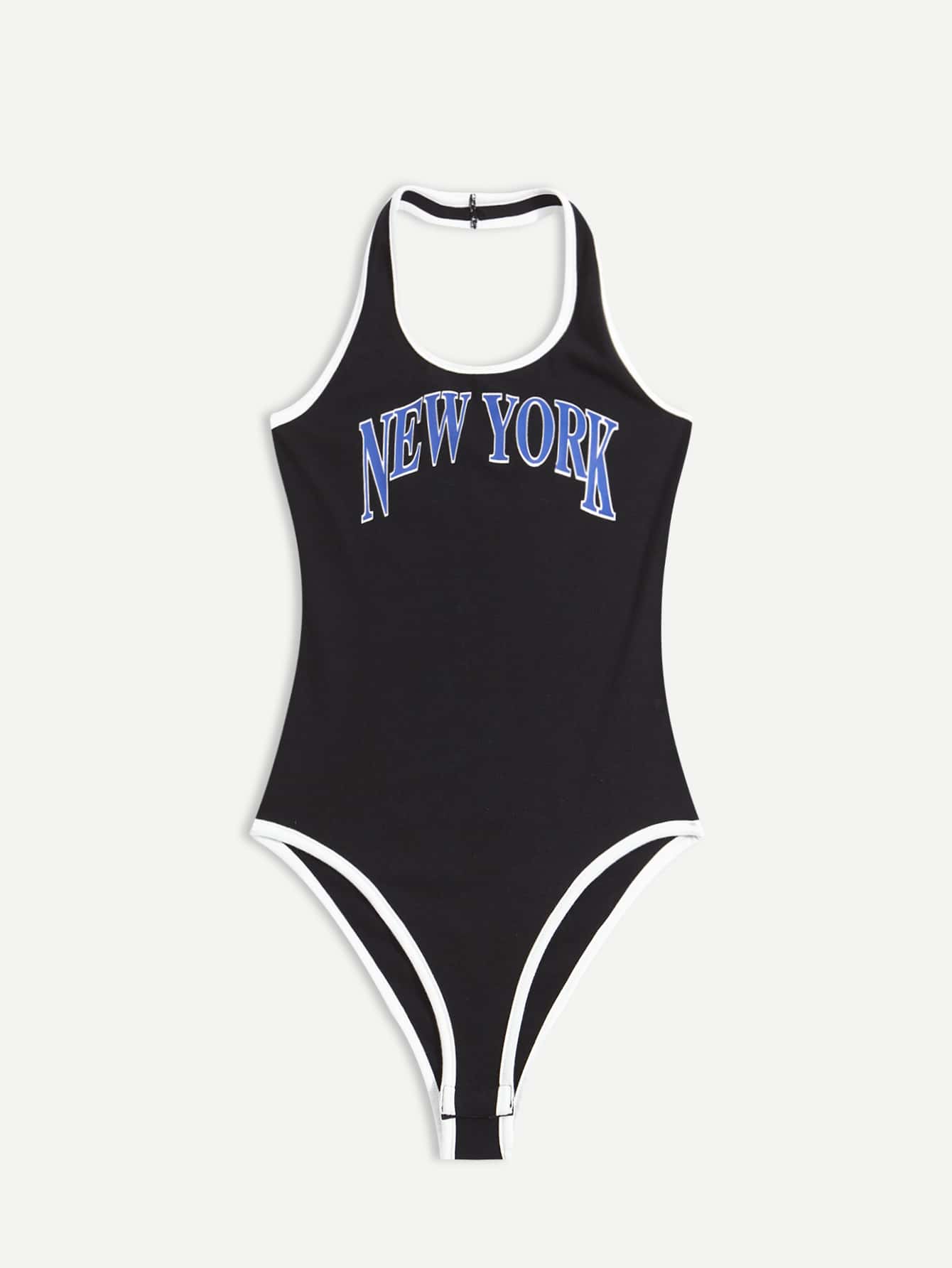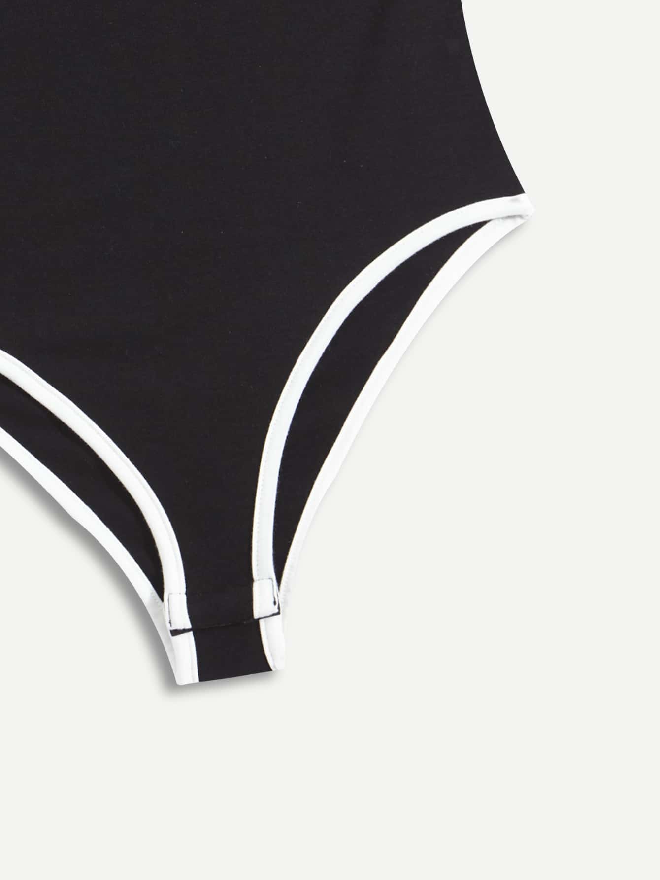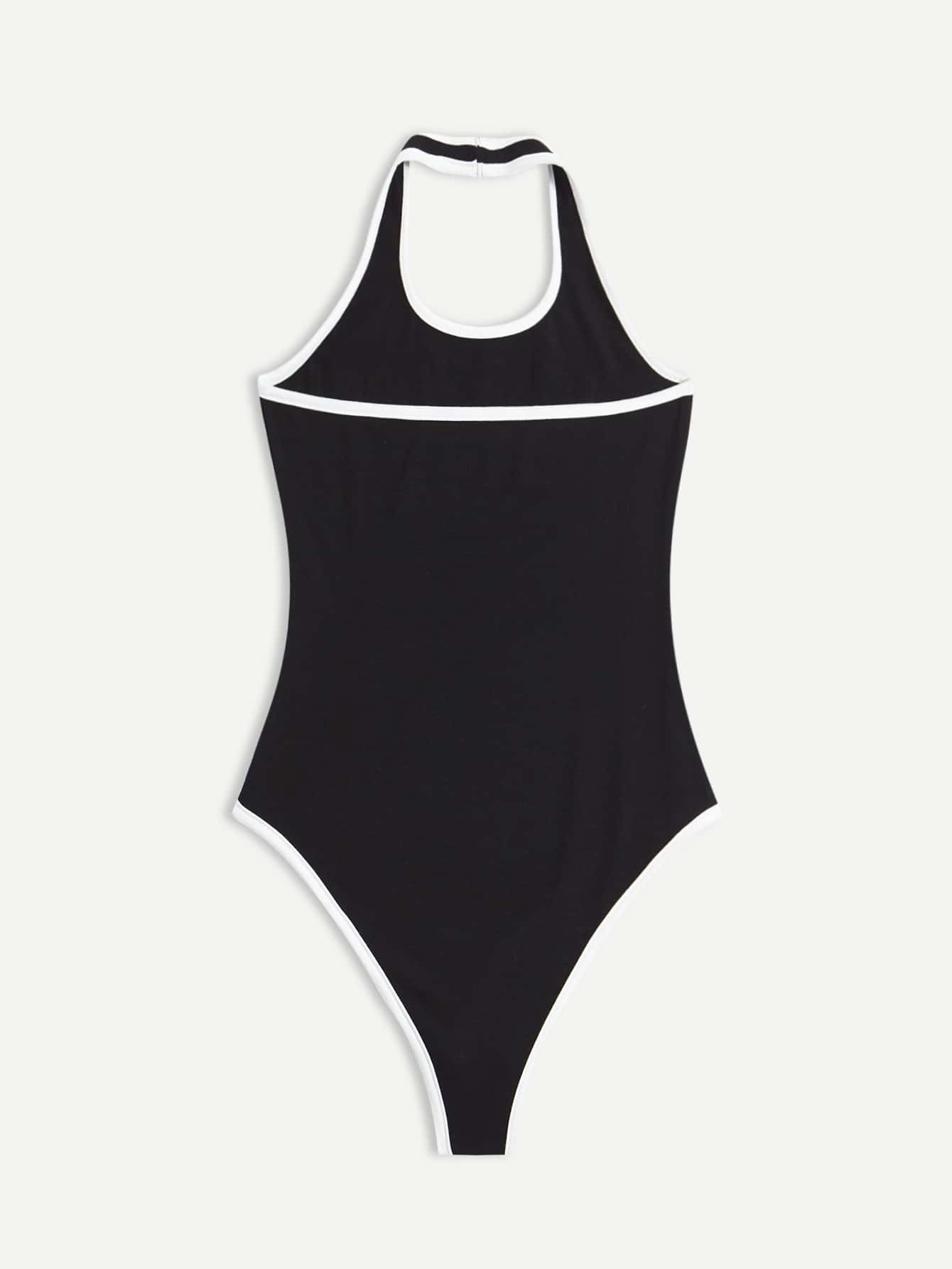 Body ras-du-cou à lettre à liseré contrastant