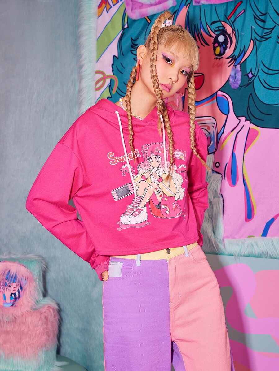 Cherry Sweat-shirt à capuche court à motif lettre et figure