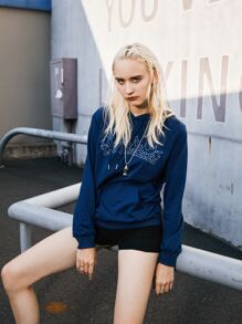 Street Life Sweat-shirt à capuche lettre feu à poche kangourou à cordon