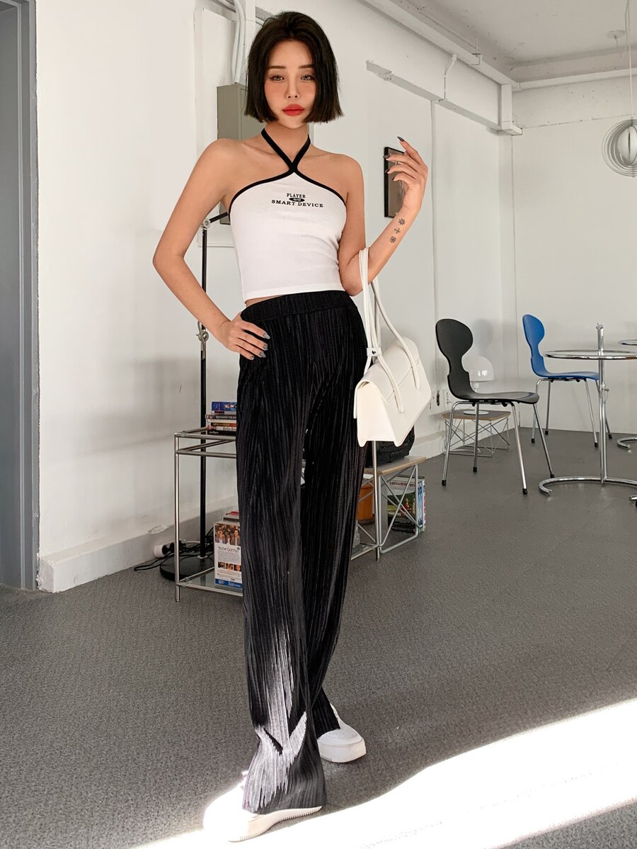 Top ras-du-cou à lettres à liseré contrastant