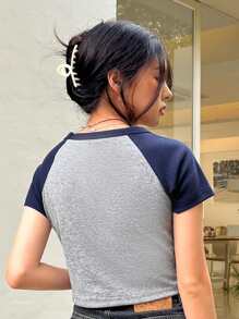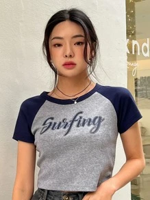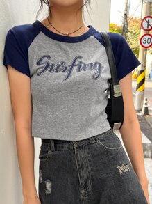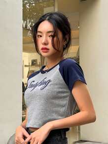 T-shirt court à lettres contrastant manches raglan