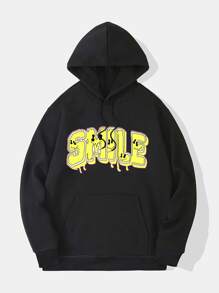 Sweat-shirt à capuche à lettres à cordon à doublure thermique
