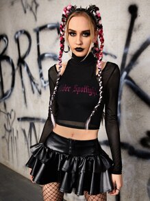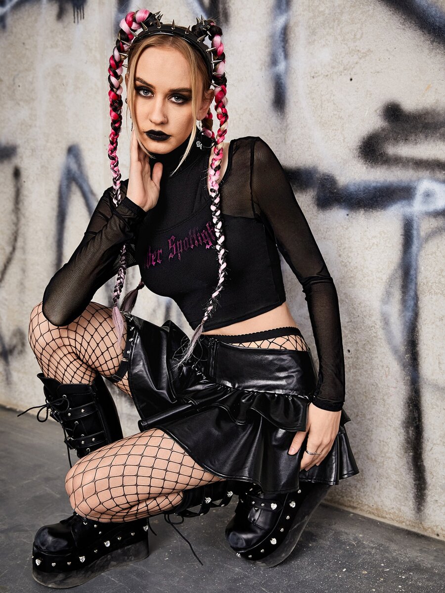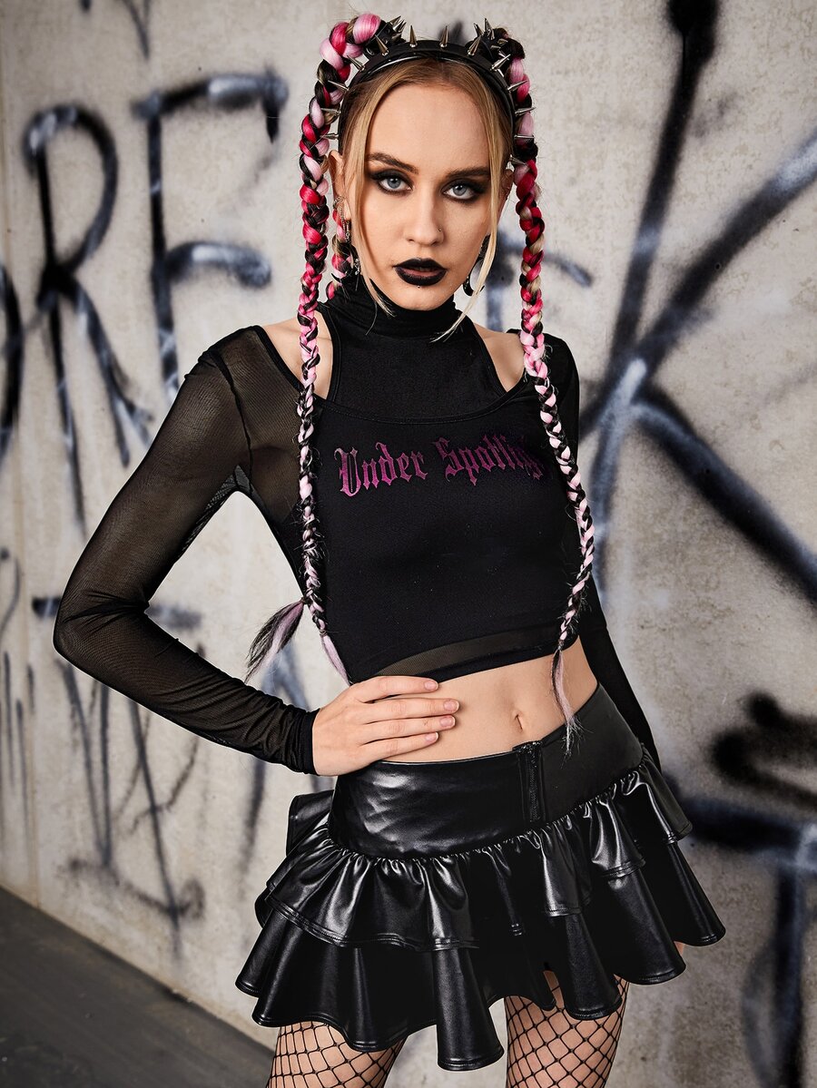 Top à lettres en tulle & Jupe multicouche en PU