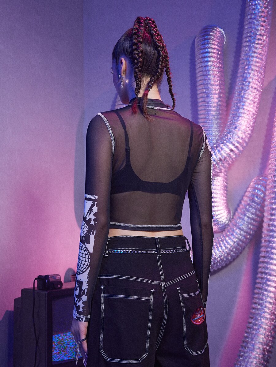 Top à lettres en tulle