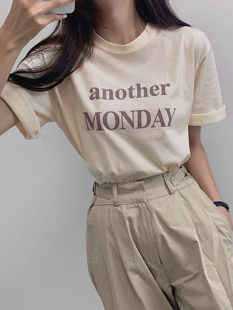 T-shirt graphique à lettres, t-shirt ample d'été, vêtements de travail décontractés pour femme