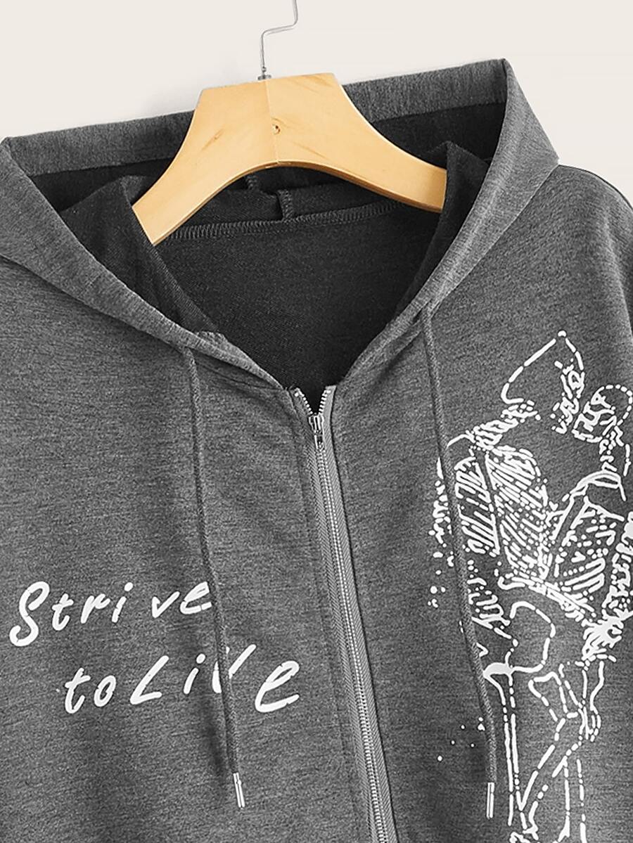 Sweat-shirt à capuche lettre à motif halloween zippé à cordon