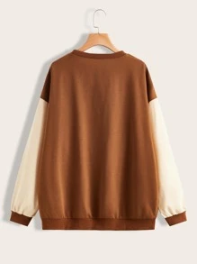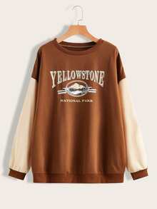 Sweat-shirt lettre et montagne à blocs de couleurs