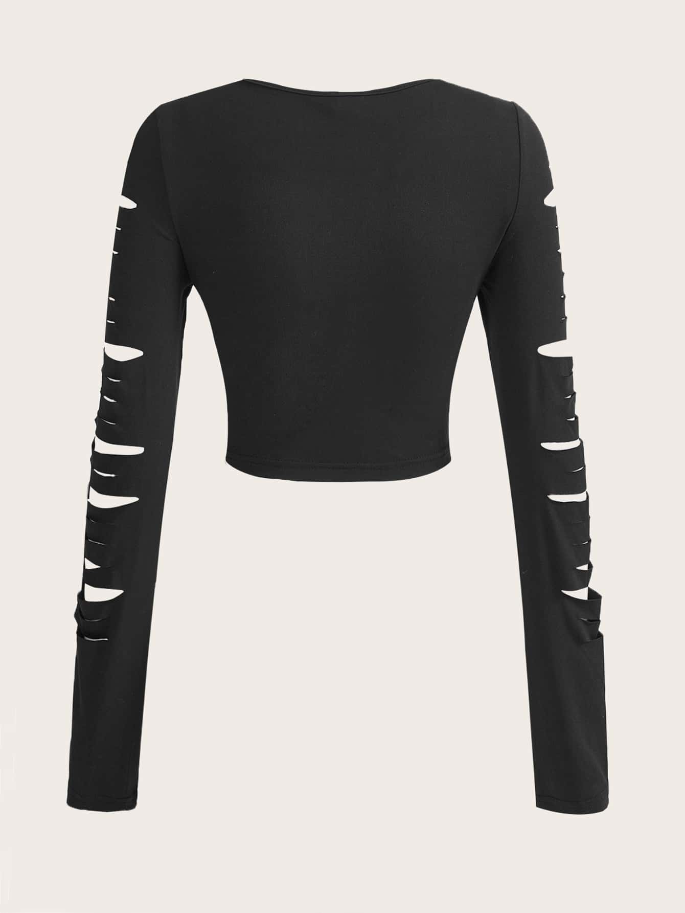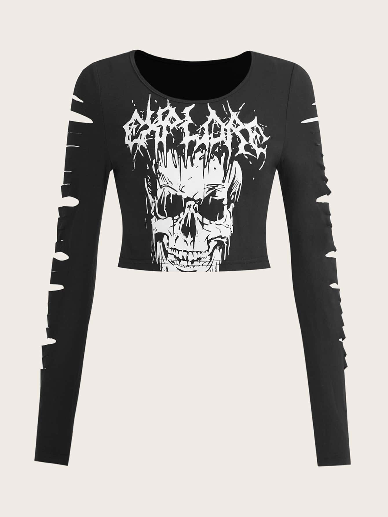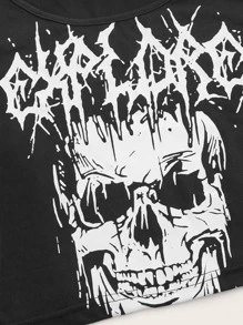 Grunge Punk T-shirt court déchiré à motif tête de mort et lettre