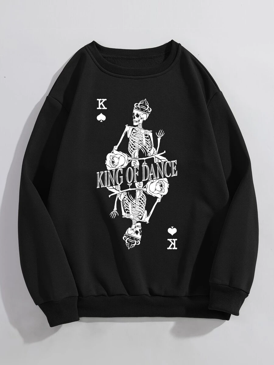 Sweat-shirt thermique lettre & à imprimé tête de mort