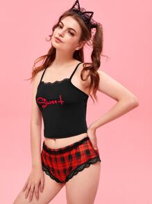 Ensembles de pyjama Dentelle contrastée Casual Lettres