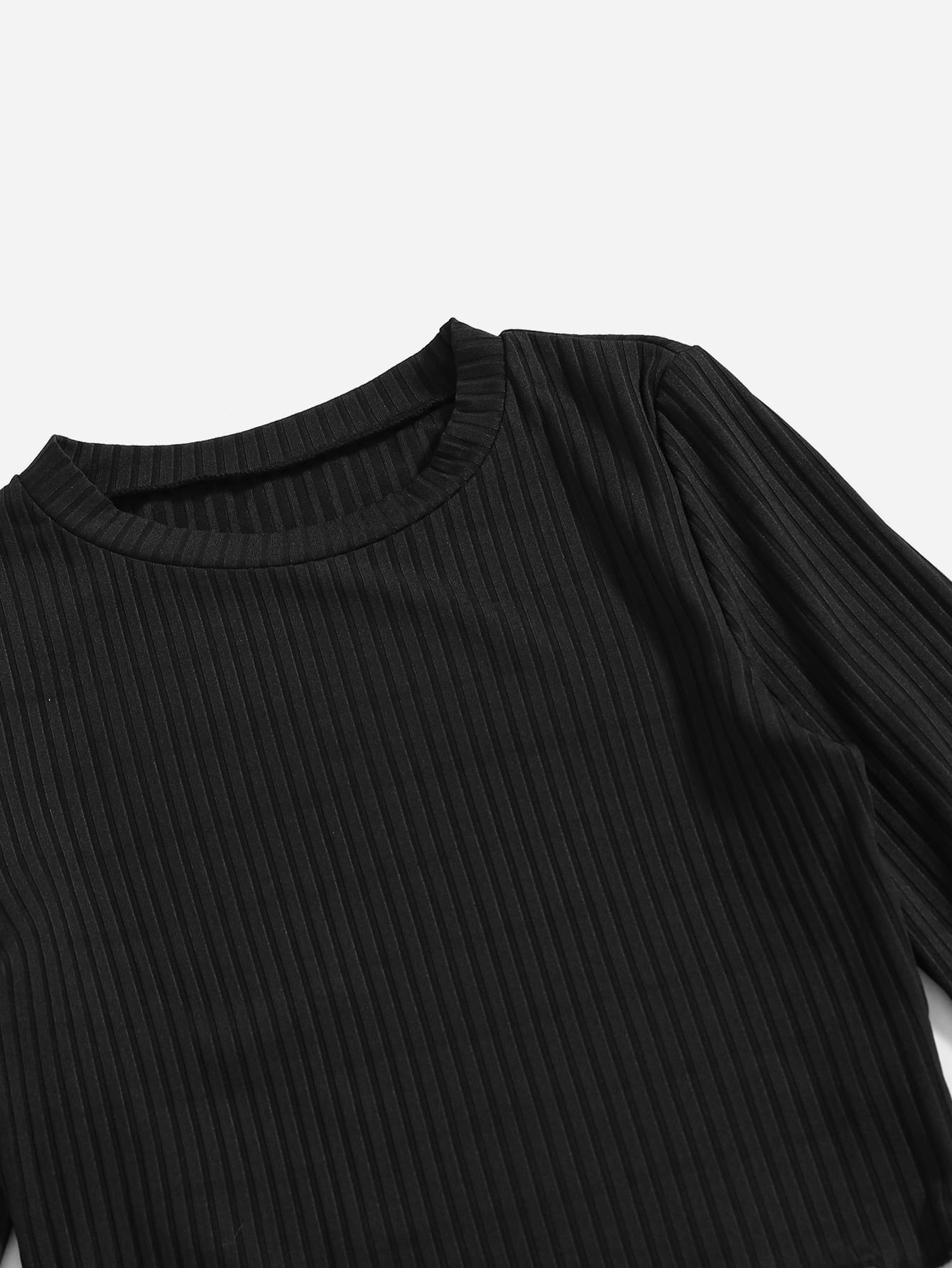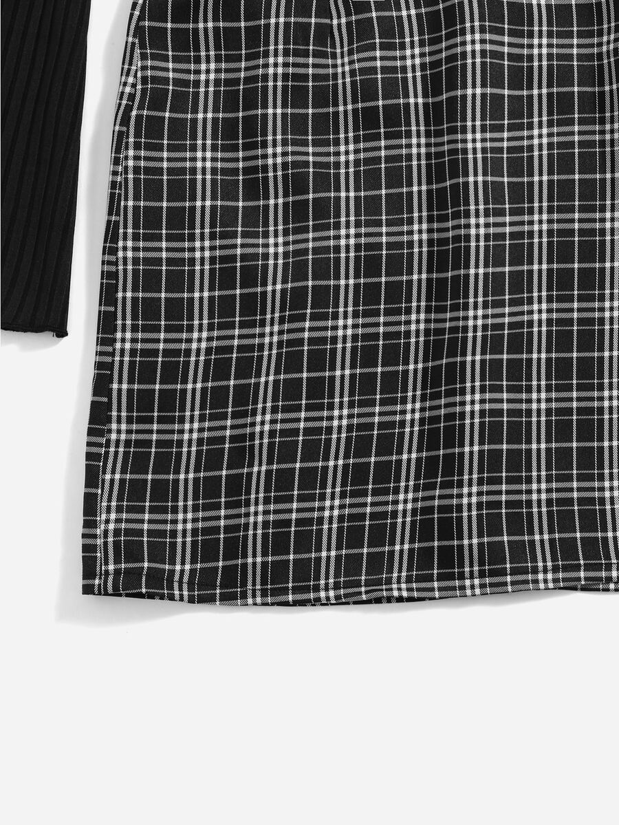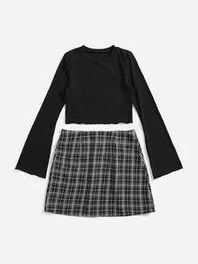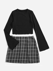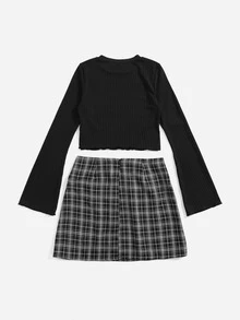 T-shirt à ourlet ondulé côtelé & Jupe à carreaux