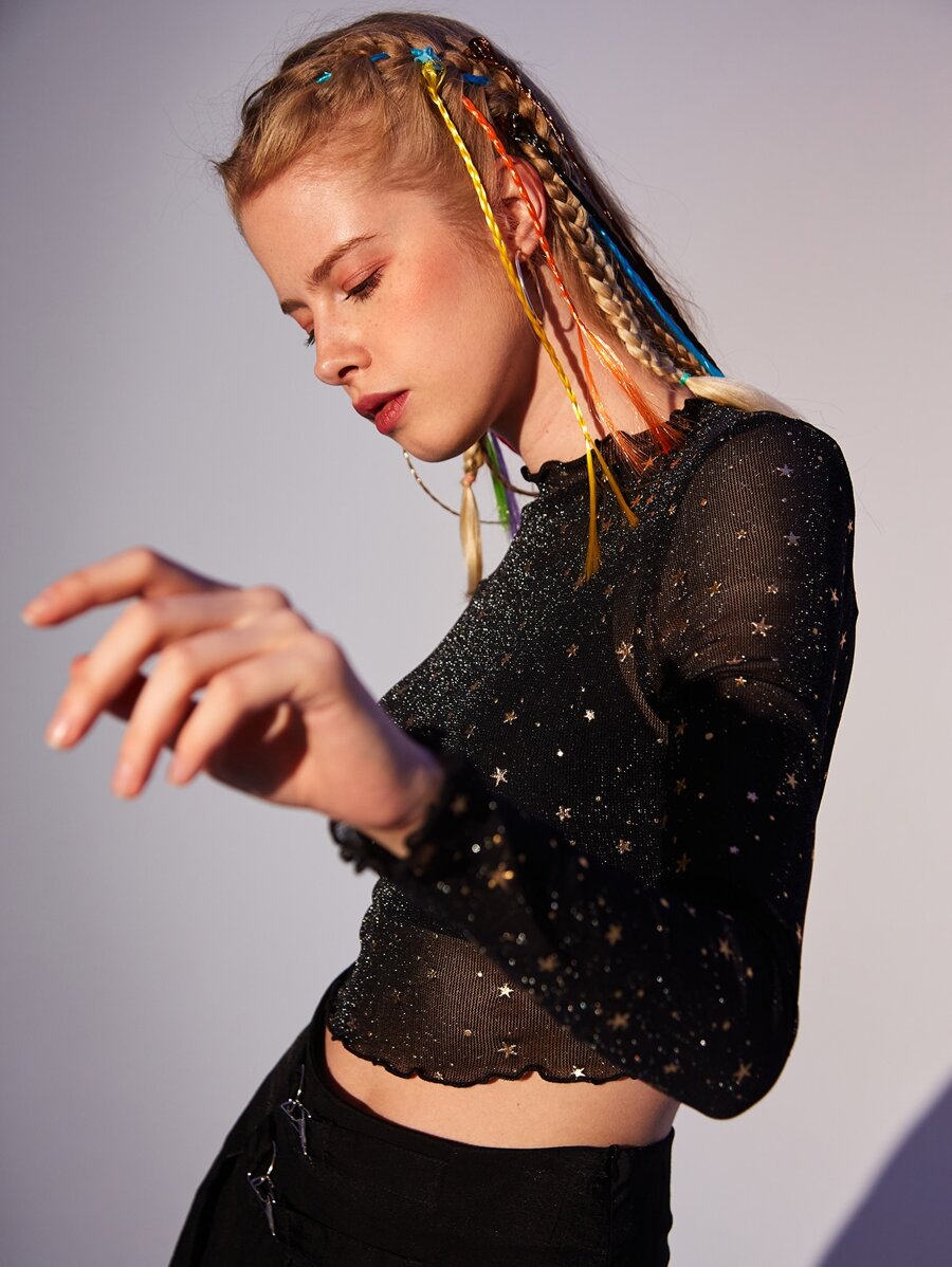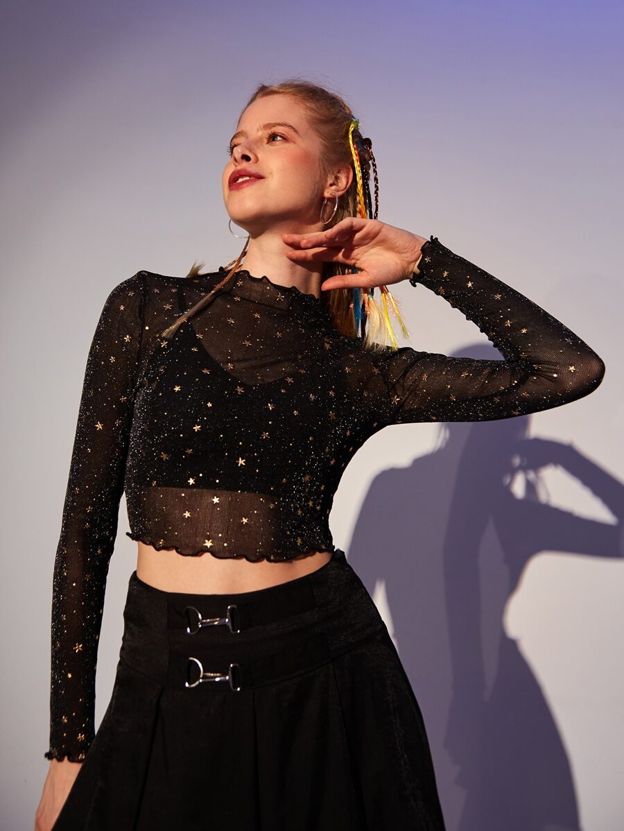 Top court en tulle à ourlet ondulé(sans soutien-gorge)