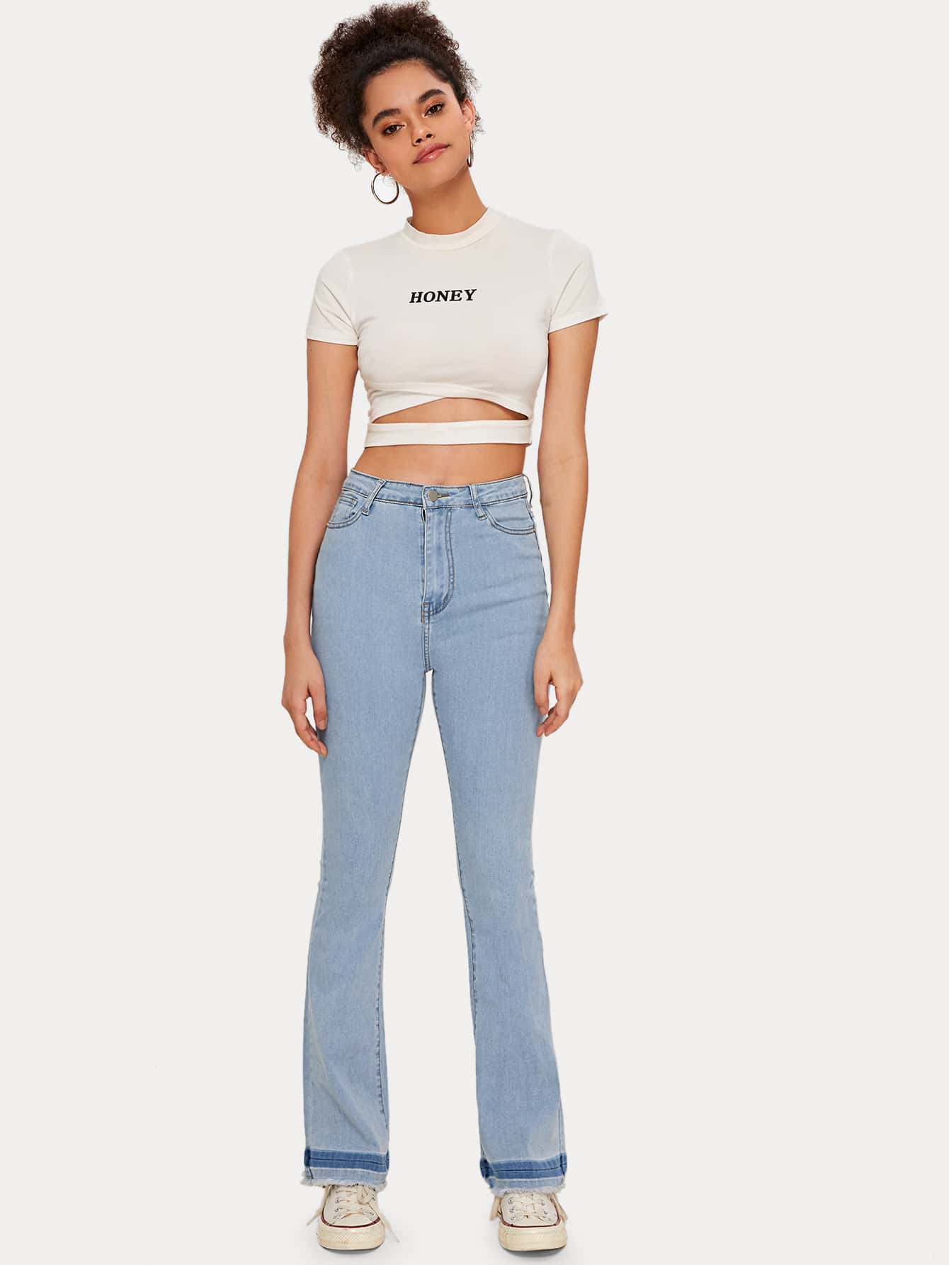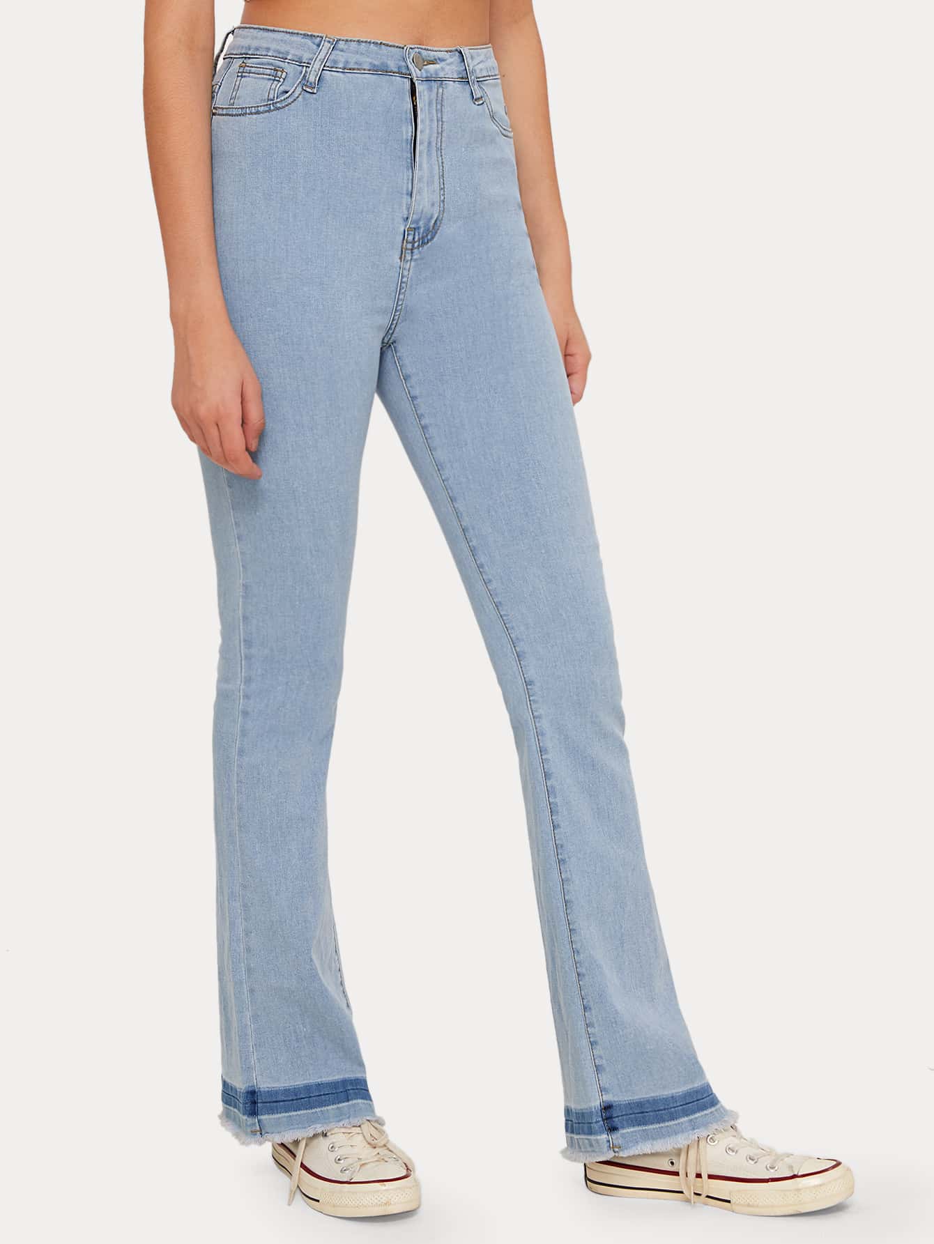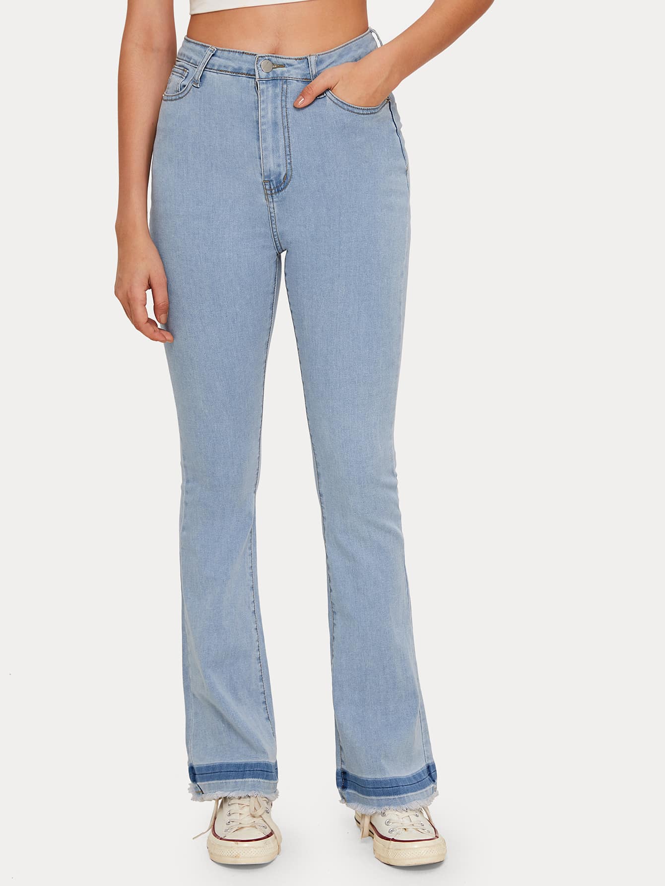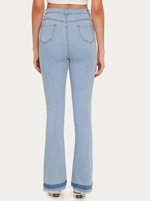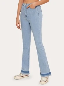 Jean pattes d'éléphant délavé à ourlet effiloché(sans ceinture)