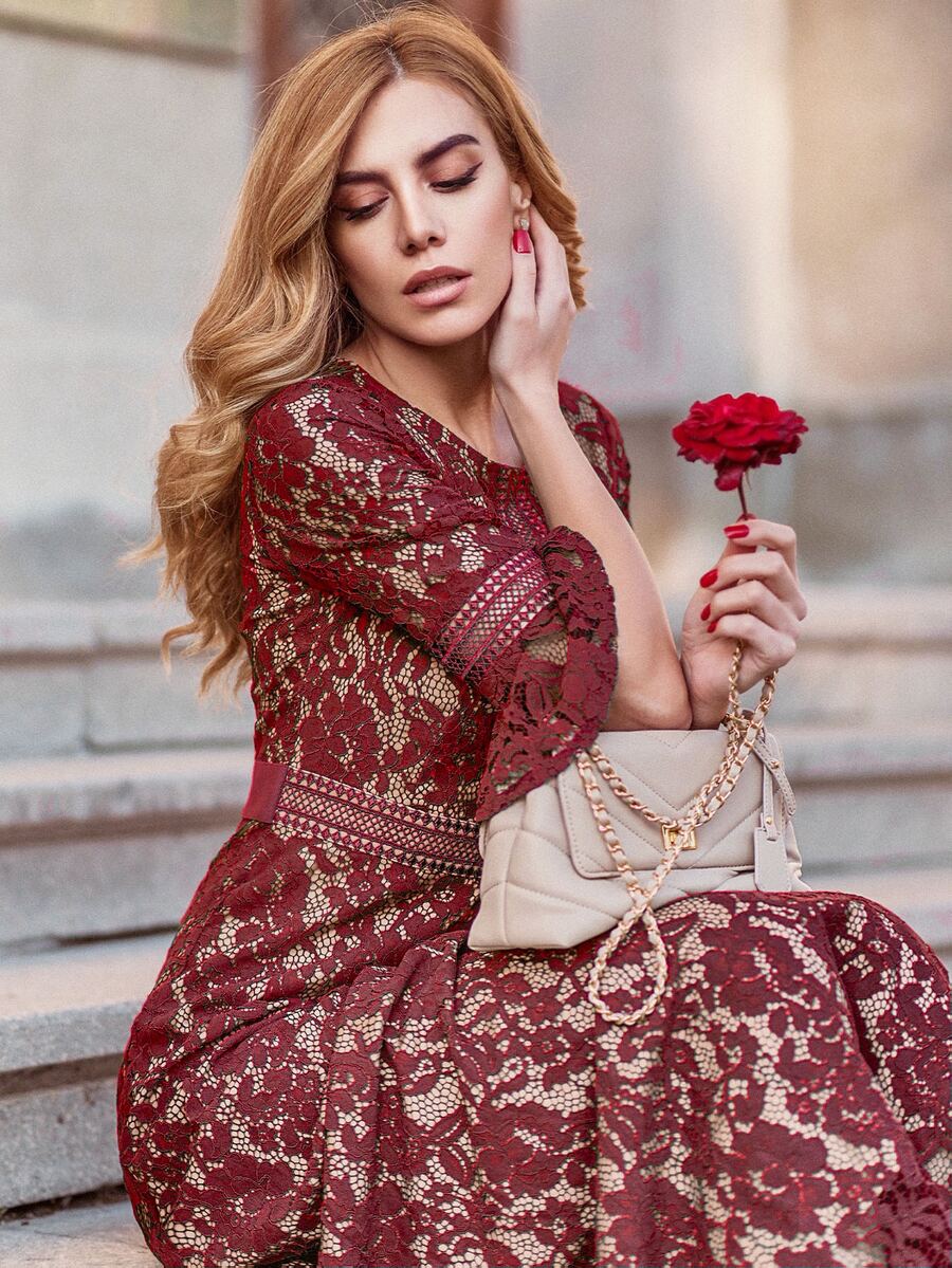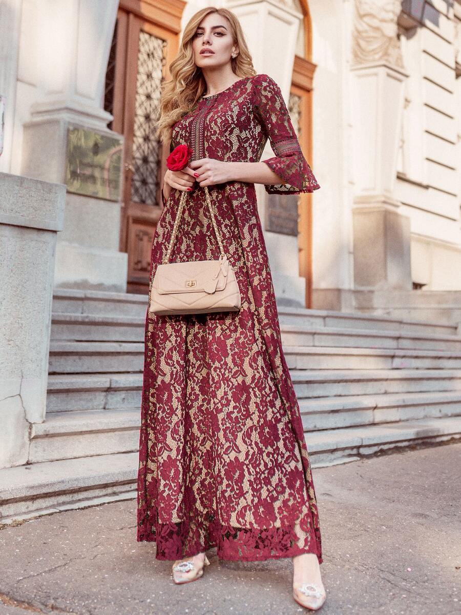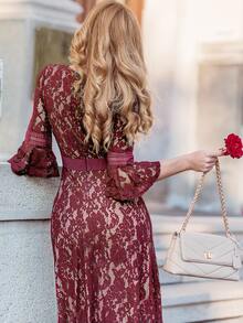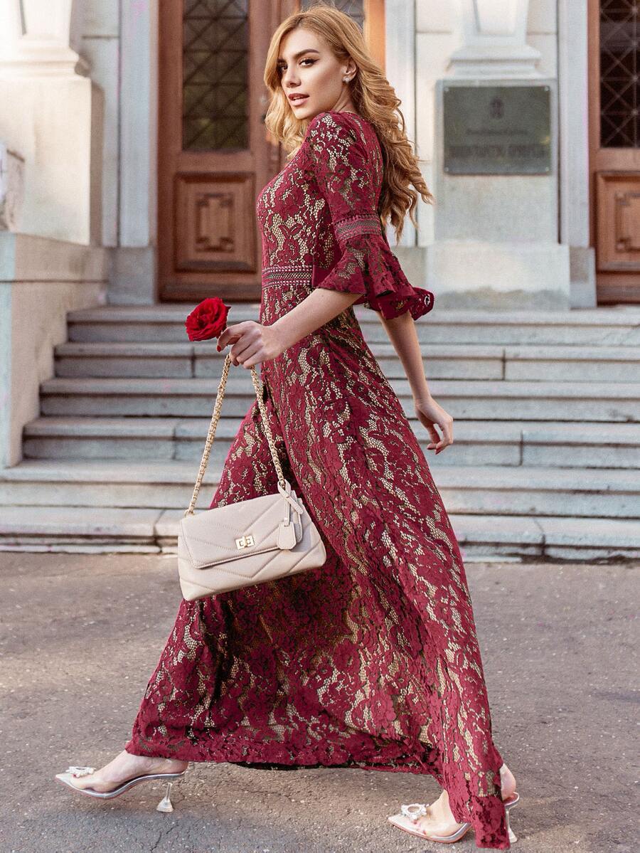 MIUSOL Robe de bal en dentelle avec manches papillon