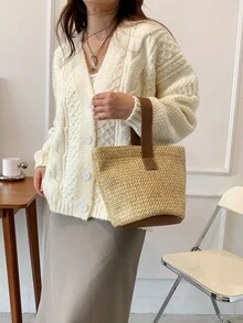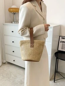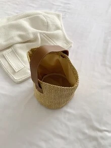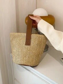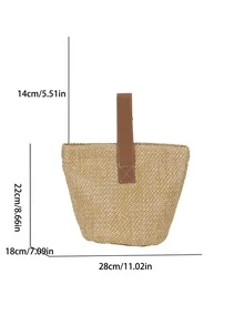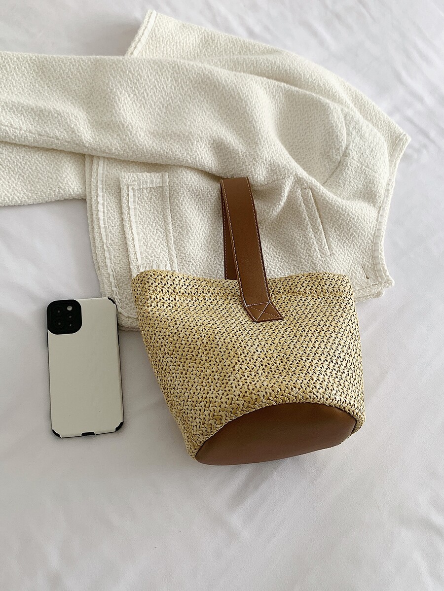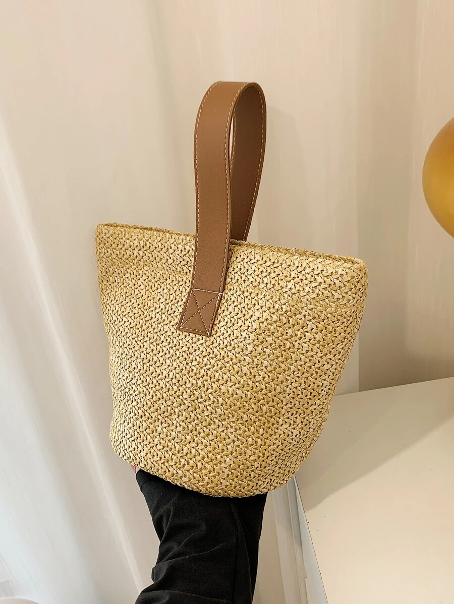 Sac en paille moyen minimaliste avec poignée pour vacances