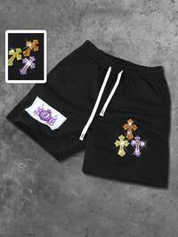 Prep Shorts décontractés pour hommes avec cordon de serrage à la taille et imprimé de croix et de lettres