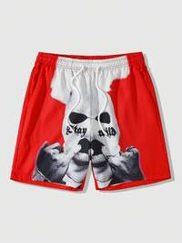 Street Life Shorts amples décontractés pour hommes avec imprimé crâne, été