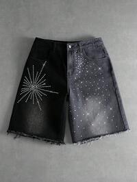 ROMWE Avant Short en jean décontracté pour homme avec décoration strass et couleurs contrastantes