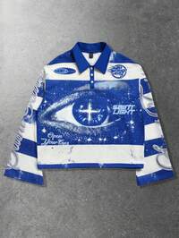 Polo à imprimé graphique style urbain pour hommes, coupe ample