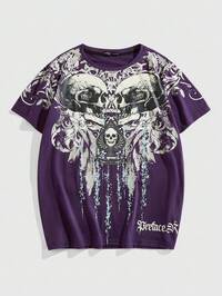 Grunge Punk T-shirt à manches courtes mode homme avec imprimé crâne, été