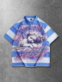T-shirt décontracté à col rond et manches courtes pour hommes avec slogan et imprimé ange, printemps/été
