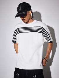 Street Life T-shirt à manches courtes col rond imprimé rayures décontracté pour hommes