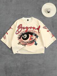 T-shirt décontracté ample pour hommes avec imprimé œil et lettre, manches 3/4