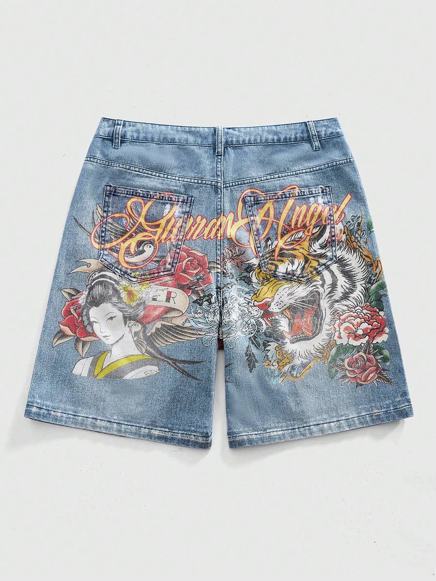 Street Life Shorts en jean décontractés imprimés colorés pour hommes