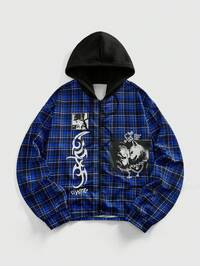 Street Life sweat-shirt à capuche zippé pour hommes avec imprimé à carreaux contrastés et figuratif