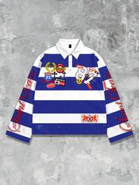 Black Jack X ROMWE T-shirt à manches longues 2 en 1 pour hommes, style décontracté avec lettres et graphiques de dessins animés en couleurs contrastées, automne