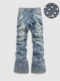 Jeans évasés pour hommes ornés de diamants et de perles scintillants