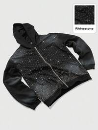 Street Life 2 couches Sweat-shirt à capuche zippé à manches longues avec décoration de strass, pour l'automne