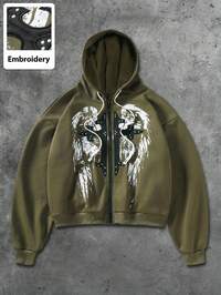 Grunge Punk Veste à capuche zippée en polaire de style punk de rue, automne/hiver