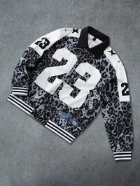 Street Life Gilet à fermeture éclair avec appliqué chiffre imprimé léopard pour hommes, automne-hiver