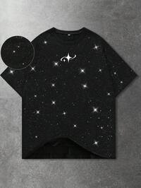 Prep T-shirt de sport ample à imprimé strass pour hommes avec épaules tombantes