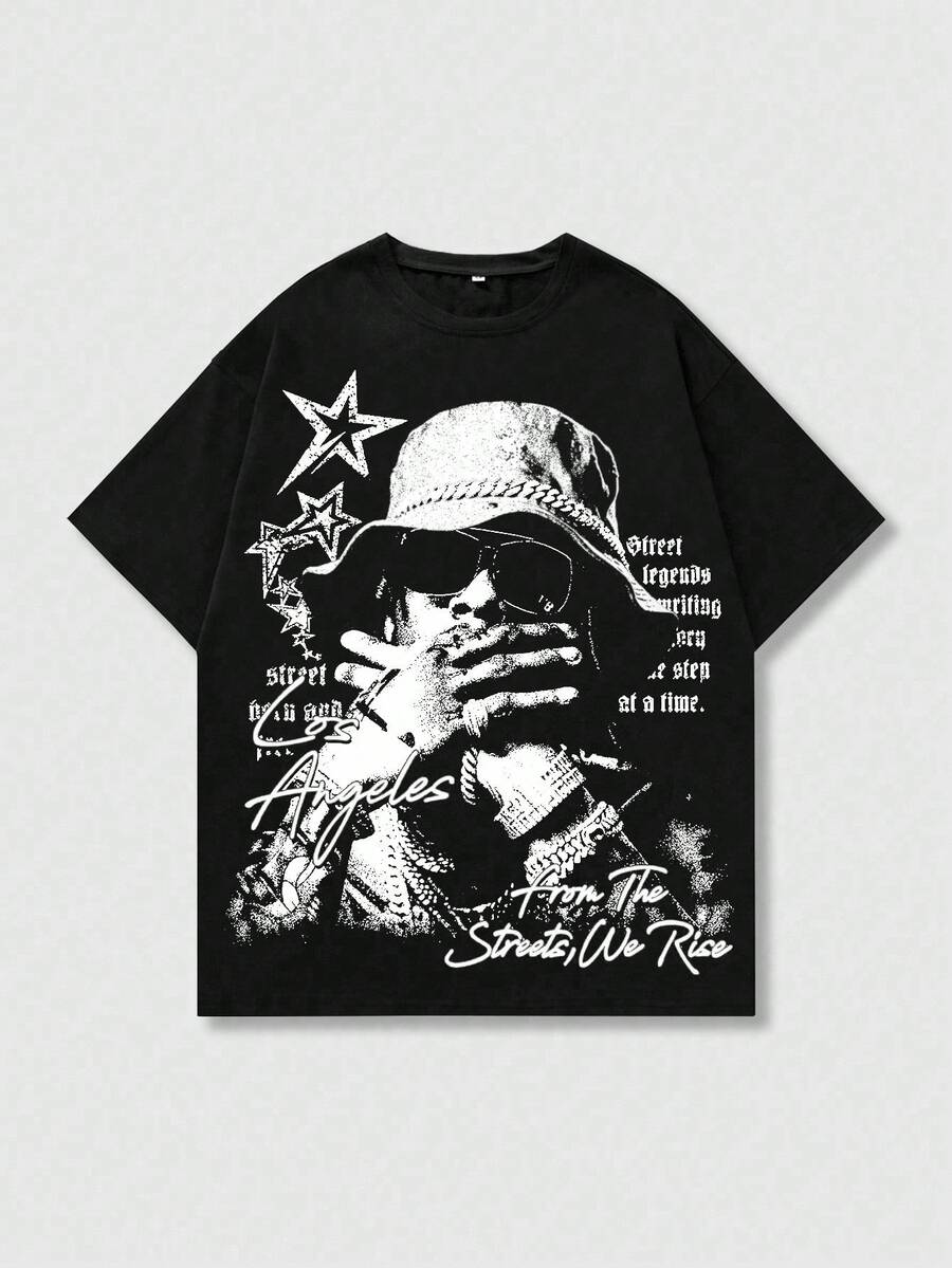 Grunge Punk T-shirt à manches courtes imprimé pour hommes, convient pour le port quotidien au printemps/été, style années 2000