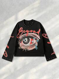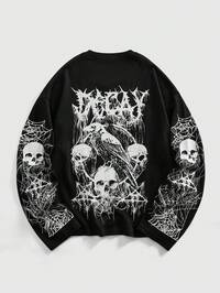 Goth Sweat-shirt-shirt col rond à imprimé lettres pour hommes, pour l'école, pour l'automne