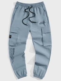 Pantalon cargo décontracté pour hommes avec graphique slogan, poche à rabat et taille à cordon, automne