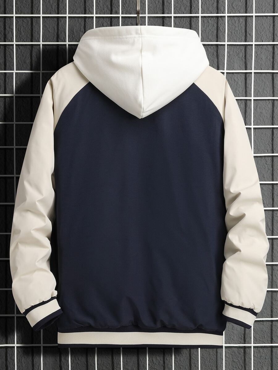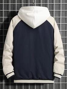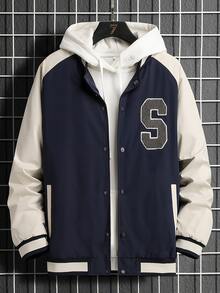 Homme 1 pièce Manteau d'hiver à applique lettre à ourlet à rayures manches raglan à col base-ball