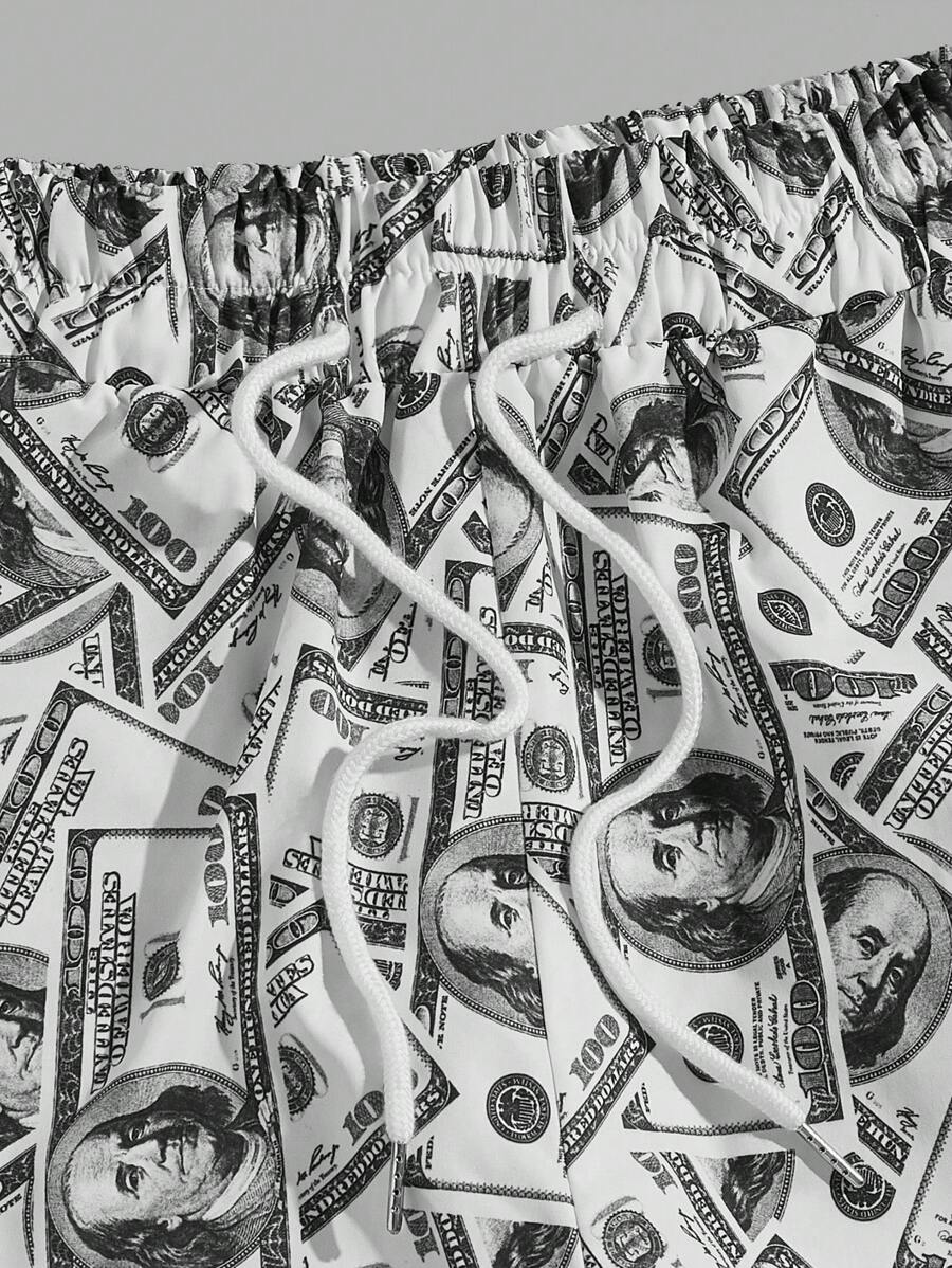 Short à taille cordonnée avec impression de dollars tout-sur-homme, école