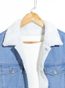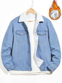 Homme Veste en jean à col sherpa à doublure en tissu duveteux (sans t-shirt)