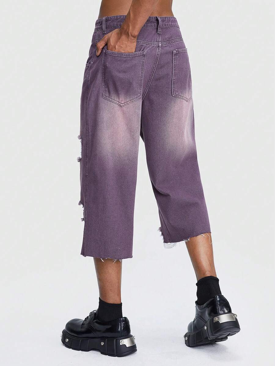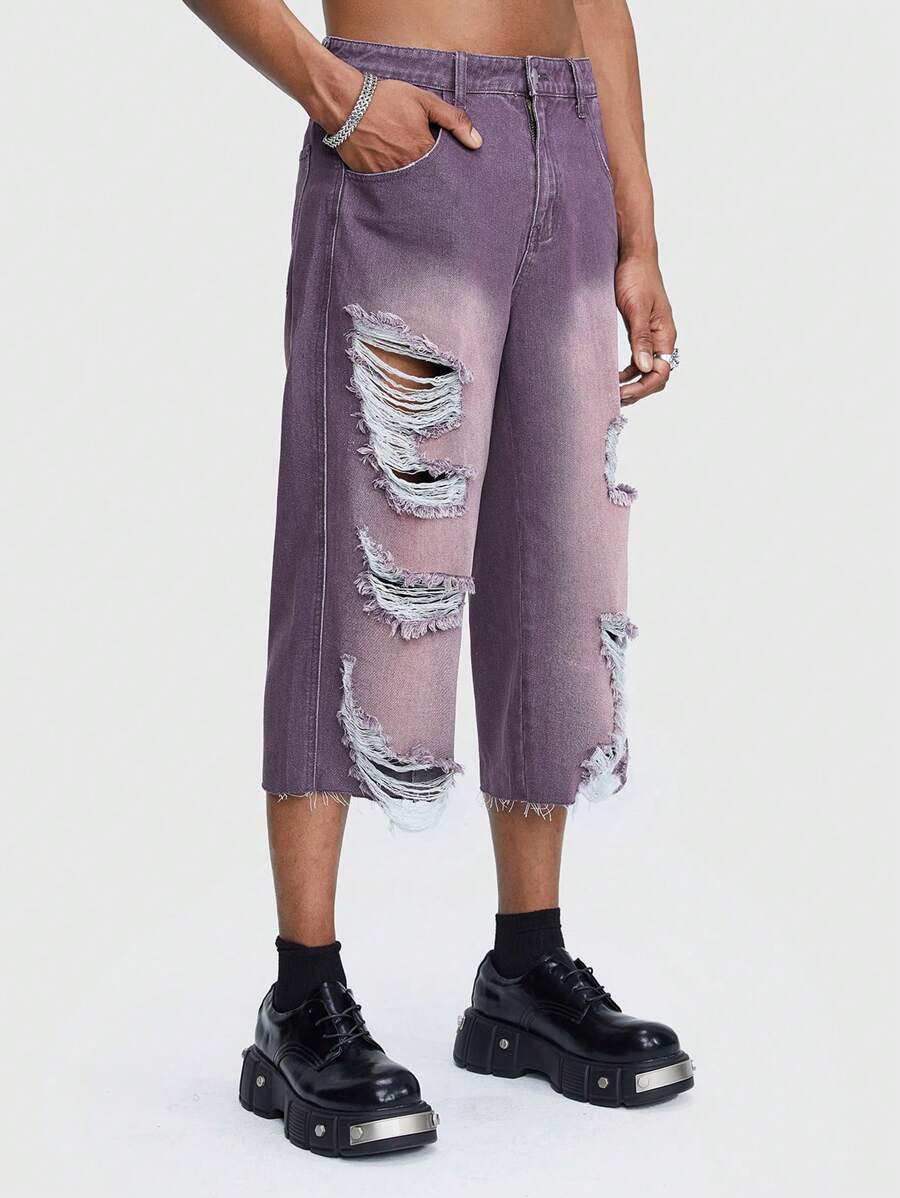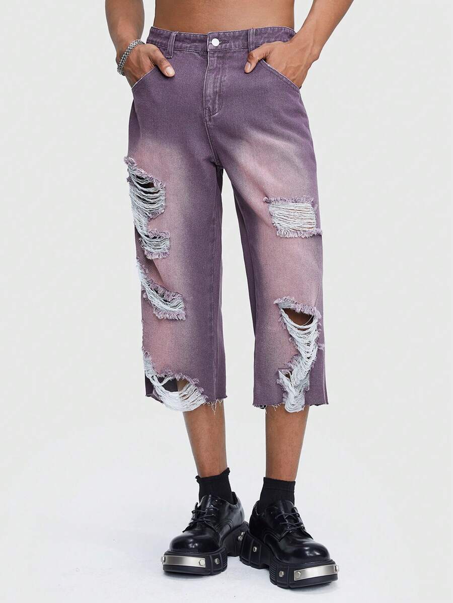 Shorts en jean décontractés pour hommes à jambe droite et taille moyenne, avec design déchiré et poches insérées