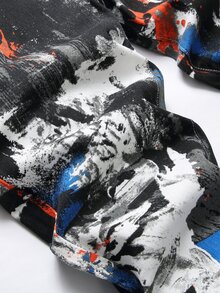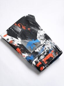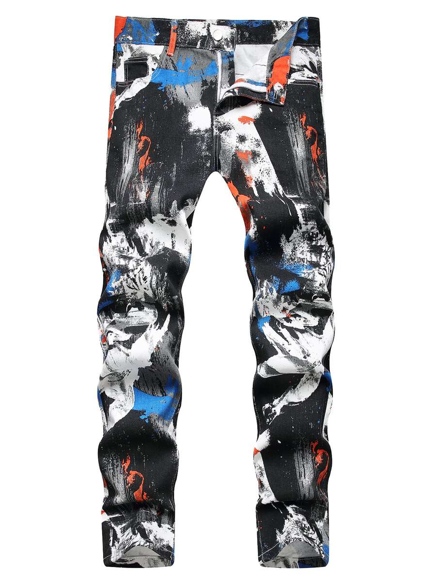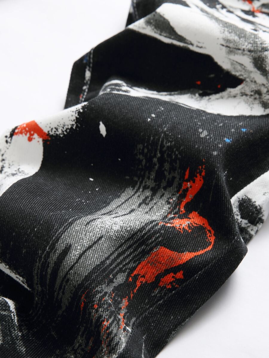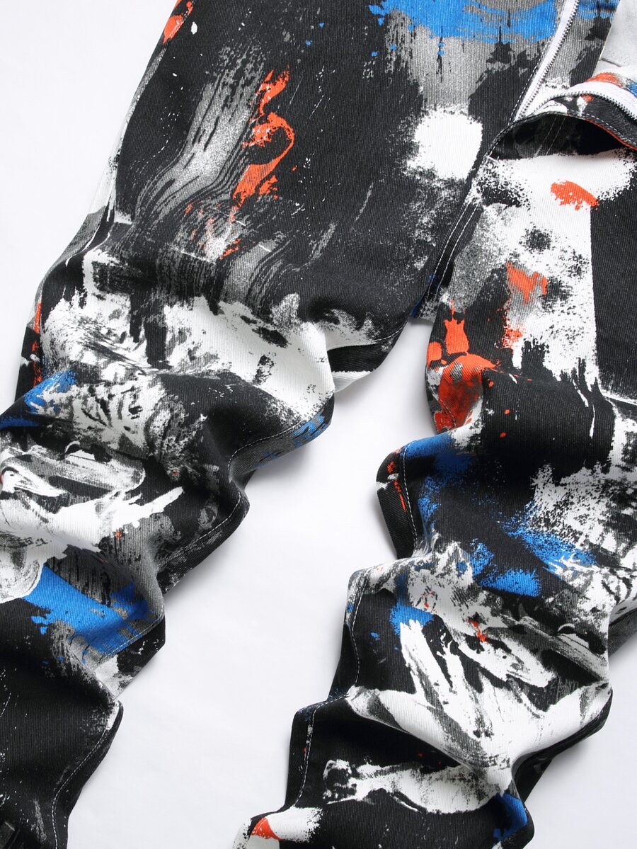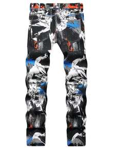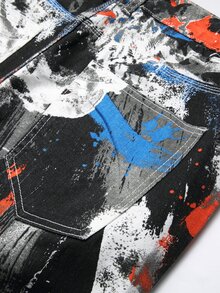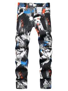 Jeans à zip avec poche à imprimé éclaboussure d'encre pour hommes